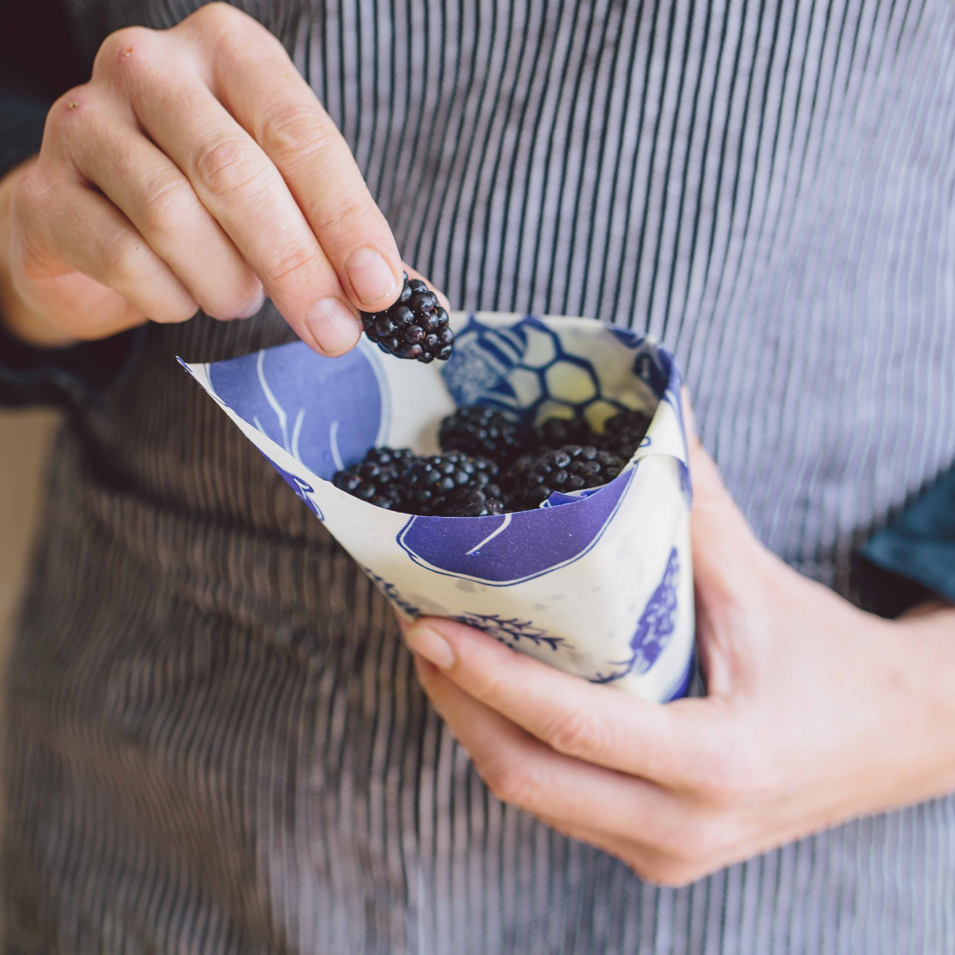 Our reusable fabric food storage wrap is made with Organic Cotton coated with beeswax, organic plant oils, and tree resin offering a flexible yet durable wrap that can be used again and again. Handmade in Vermont by a Certified B Corporation. Bee's Wrap® is washable, compostable, and reusable for up to a year. Wash in cool water with a mild soap and let air dry, avoid exposure to heat. Compostable at the end of its usability.